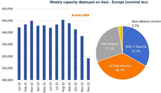 Alphaliner data also shows that on the one hand, new players are quitting the Asia-Europe route in succession, on the other hand, the large container shipping alliance is also reducing the ship capacity on such long routes.